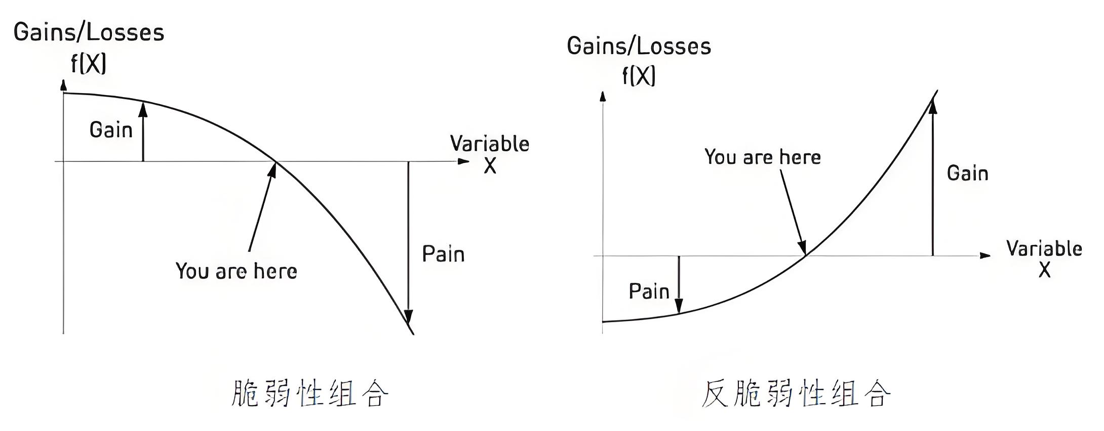 投資組合的脆弱性表現(xiàn)為,當風險不利變動時虧損呈加速上升,如收益有限虧損無限的期權(quán)策略或帶止損的線性策略(觸及止損后被迫降倉,削弱反彈收益)。由于脆弱性本質(zhì)為非線性,故需通過“非線性對沖”進行控制,如買入看跌期權(quán)(類似保險)。