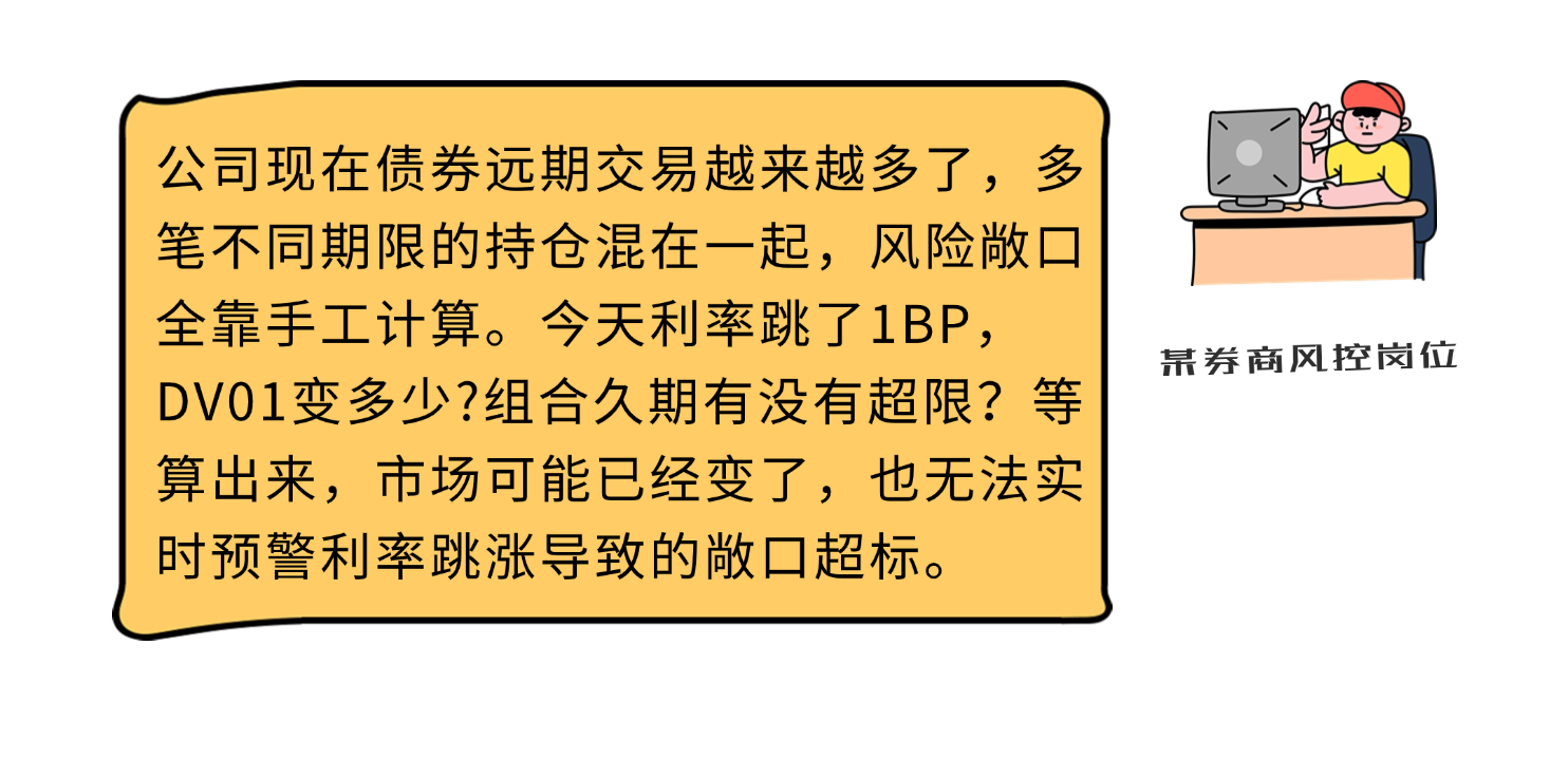 風(fēng)控一體化。嵌入DV01、交易對手信用風(fēng)險敞口等多維度指標(biāo),聯(lián)動限額監(jiān)控系統(tǒng),主動規(guī)避市場沖擊。